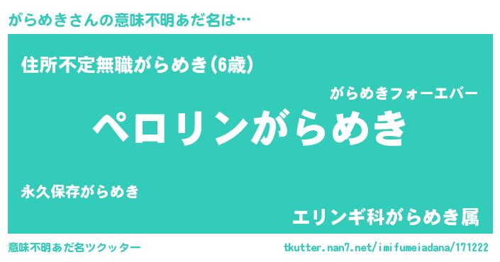 | 男性向けラノベタイトル風あだ名 | 『ガラメキアートオンライン』 |