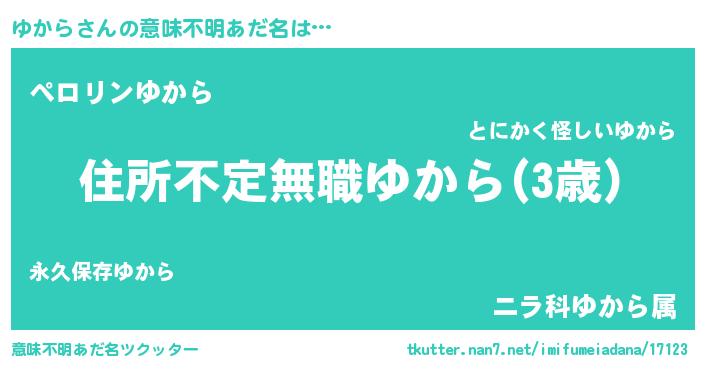 | 男性向けラノベタイトル風あだ名 | 『この素晴らしい世界にゆからを!』 |