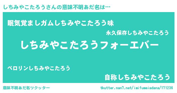 | 胡散臭い通販商品みたいなあだ名 | 『世界が平和になる高級そうな壺…その名も「しちみやこたろう」』 |