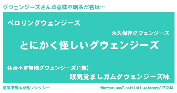 | ピコ太郎風あだ名 | 『グウ一郎』『グコ四郎』『ググ太郎』 |