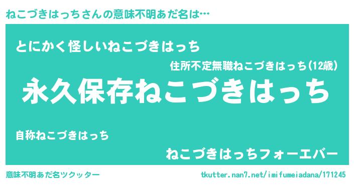 | ポケモン風あだ名 | 『ゼニネコ』『ヒネコヅキハッチ』 |