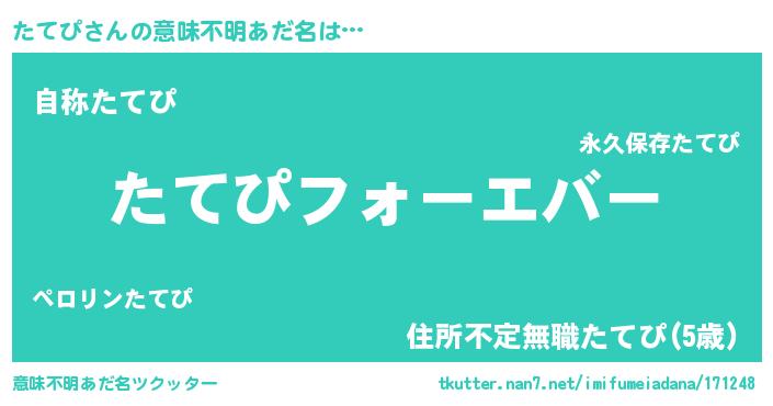 | ヒーロー風カッコイイあだ名 | 『ウルトラたてぴマン』『最強戦士タテピ』 |