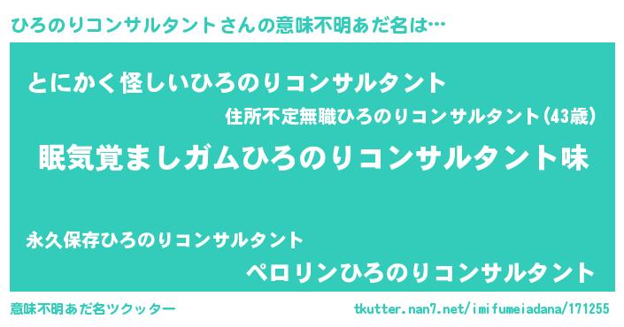| ヒーロー風カッコイイあだ名 | 『慈愛の使者ひろのりコンサルタント』 |