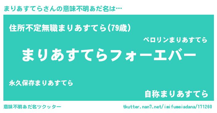 | 欧米人風あだ名 | 『まりあすてらクリステル』 |