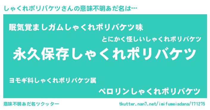 | ヒーロー風カッコイイあだ名 | 『ネオシャクレポリバケツ』 |