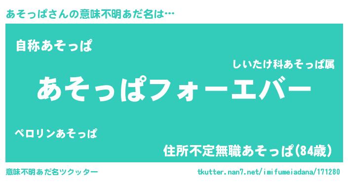 | 女子向けラノベタイトル風あだ名 | 『あそっぱの婚約者』『闇のあそっぱ』 |