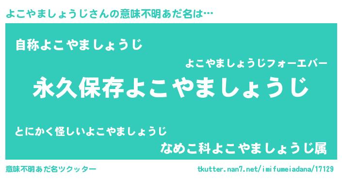 | 男性向けラノベタイトル風あだ名 | 『よこやましょうじという概念が存在しない退屈な世界 』 |
