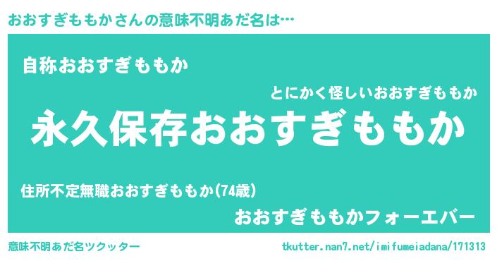 | 胡散臭い通販商品みたいなあだ名 | 『来世でも幸せになれる水素水…その名も「おおすぎももか」』 |