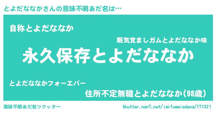 | 胡散臭い通販商品みたいなあだ名 | 『前代未聞の健康食品…その名も「とよだななか」』 |