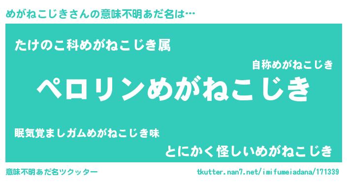 | 男性向けラノベタイトル風あだ名 | 『めがねこじきの憂鬱』 |