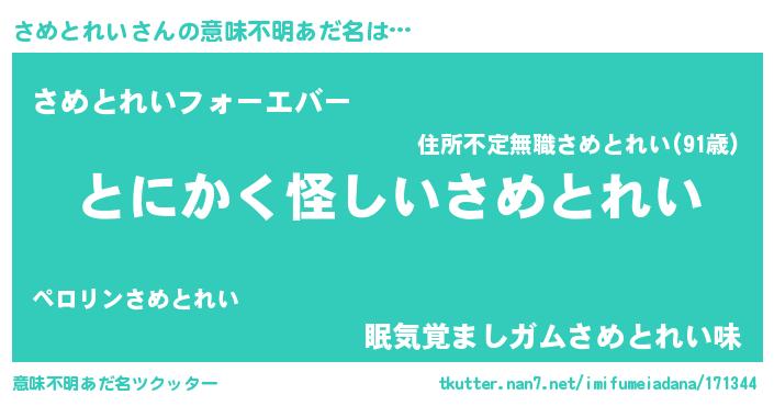 | ヘコむあだ名 | 『さめお』『牛乳』『さめっふぃ~』 |
