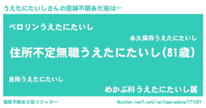 | 料理風あだ名 | 『うえたにたいしのカルパッチョ風』 |