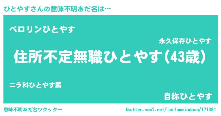 | ヘコむあだ名 | 『ひとにゅー』『ひとやす(小並感)』 |