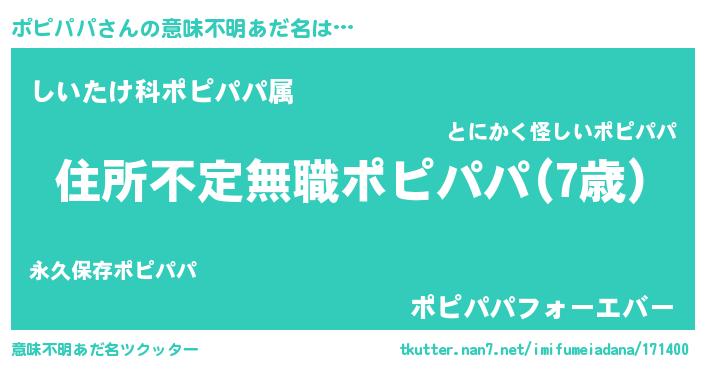 | ヒーロー風カッコイイあだ名 | 『仮面ポピダー』『ウルトラポピパパマン』 |