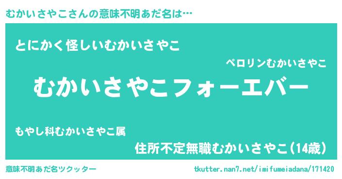 | 欧米人風あだ名 | 『むかいさやこクリステル』 |
