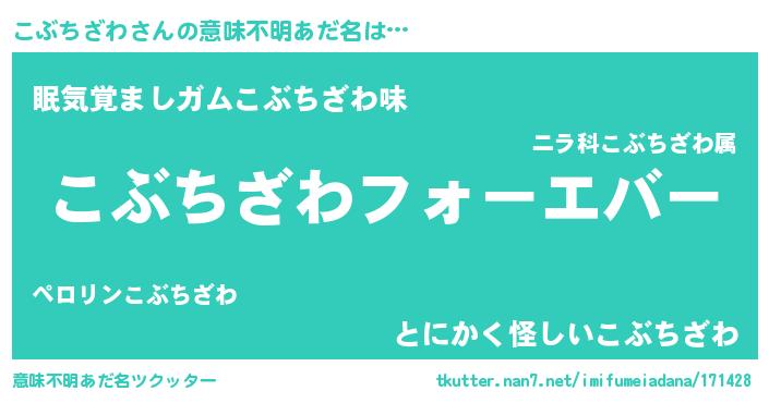| 男性向けラノベタイトル風あだ名 | 『やはりこぶちざわの青春ラブコメはまちがっている 』 |