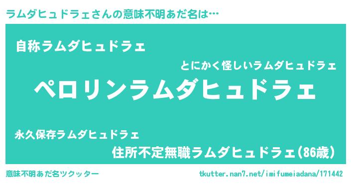 | 胡散臭い通販商品みたいなあだ名 | 『億万長者になれる水晶球…その名も「ラムダヒュドラェ」』 |