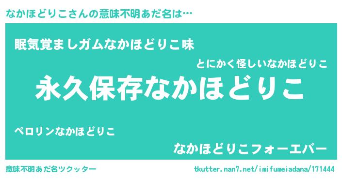| 胡散臭い通販商品みたいなあだ名 | 『来世でも幸せになれる水素水…その名も「なかほどりこ」』 |