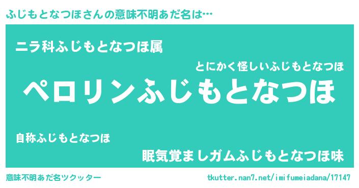 | 男性向けラノベタイトル風あだ名 | 『フジモトナツホアートオンライン』 |