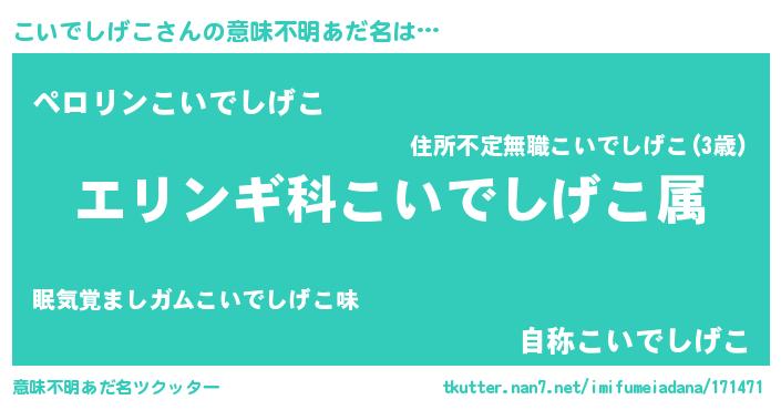 | 料理風あだ名 | 『こいでしげこごはん』 |