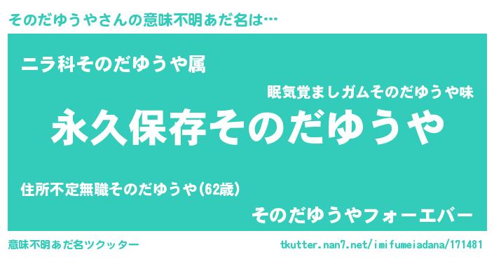 | 男性向けラノベタイトル風あだ名 | 『そのだゆうやという概念が存在しない退屈な世界 』 |