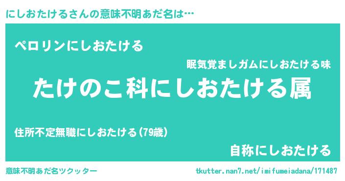 | ヘコむあだ名 | 『にしにー』『にしおたける(小並感)』 |