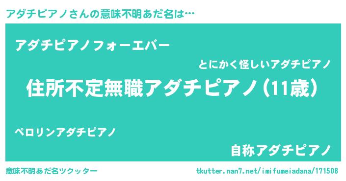 | 女子向けラノベタイトル風あだ名 | 『乙女ゲームの破滅フラグしかない悪役アダチピアノに転生してしまった…』 |