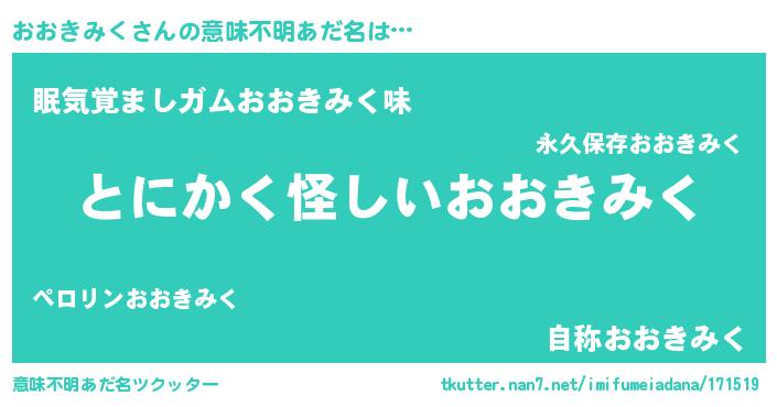 | 欧米人風あだ名 | 『ウサインおおきみく』 |