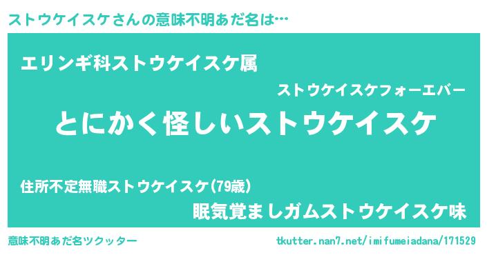 | ポケモン風あだ名 | 『ヒストウケイスケ』『ストキング』 |