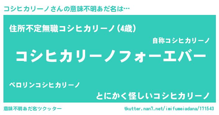 | ファンタジー風あだ名 | 『エターナルコシヒカリーノー』 |