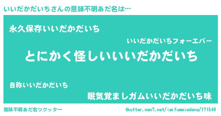 | ポケモン風あだ名 | 『ヒイイダカダイチ』『ゼニイイ』 |