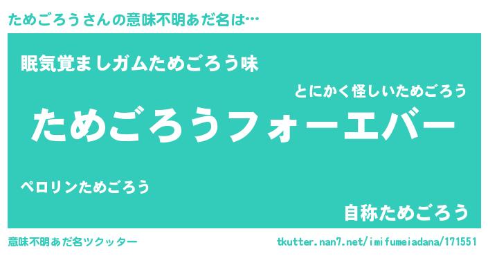 | 欧米人風あだ名 | 『ためごろうクリステル』 |