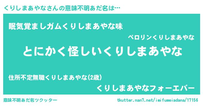 | ポケモン風あだ名 | 『ヒクリシマアヤナ』『クックウザ』 |