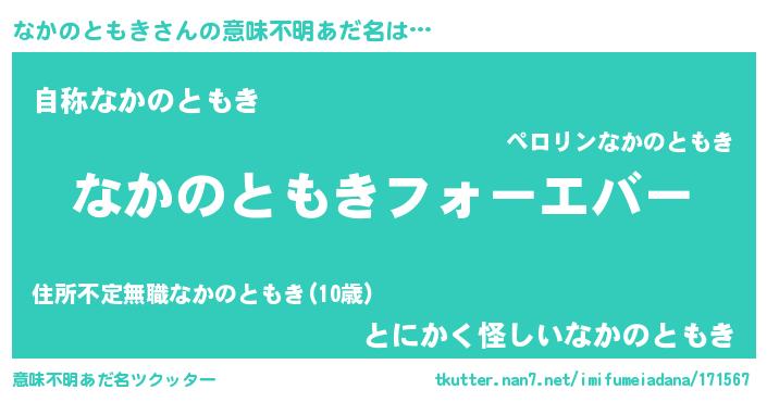 | ファンタジー風あだ名 | 『エターナルナカノトモキー』 |