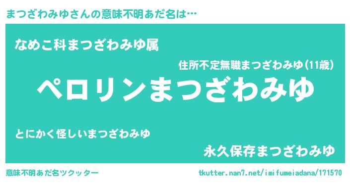 | ヘコむあだ名 | 『まつっふぃ~』『まつざわみゆ(小並感)』 |