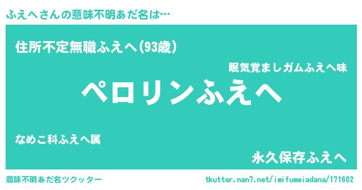| 男性向けラノベタイトル風あだ名 | 『フエヘアートオンライン』 |
