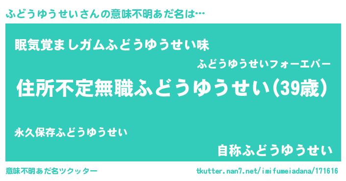 | 男性向けラノベタイトル風あだ名 | 『この素晴らしい世界にふどうゆうせいを!』 |