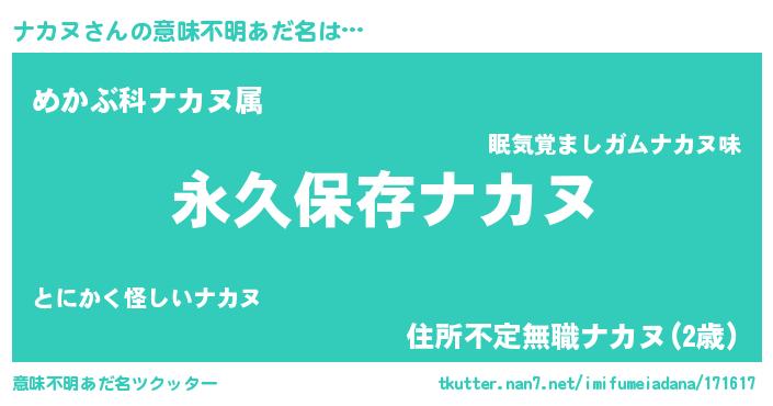 | 胡散臭い通販商品みたいなあだ名 | 『来世でも幸せになれる水素水…その名も「ナカヌ」』 |