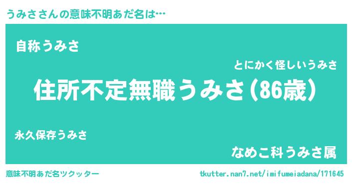 | 男性向けラノベタイトル風あだ名 | 『魔弾の王とうみさ』『ウミサスレイヤー』 |