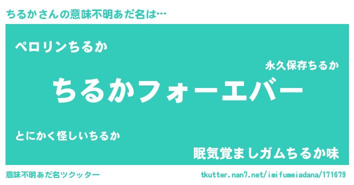 | 恥ずかしいあだ名 | 『ちるっちょ』『プリティーちるか』 |