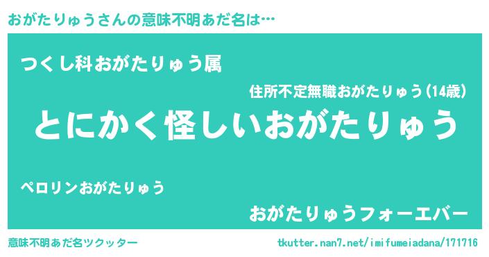 | ポケモン風あだ名 | 『オガゴンZ』『ヒオガタリュウ』 |