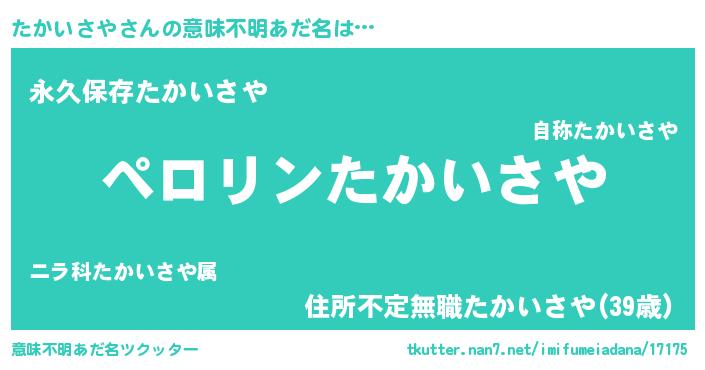 | 胡散臭い通販商品みたいなあだ名 | 『必ず成功するブレスレット…その名も「たかいさや」』 |