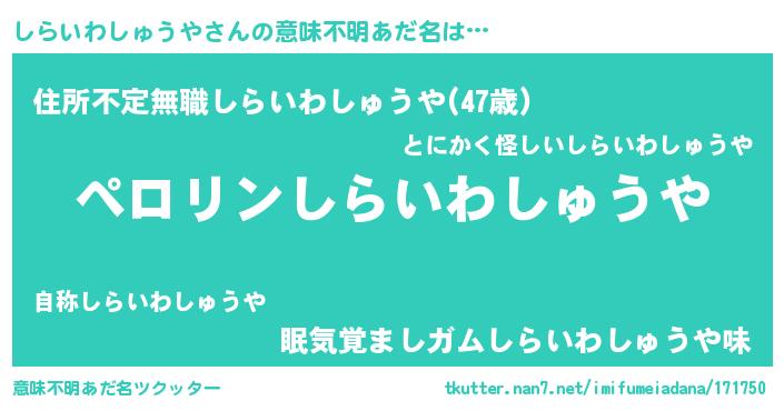 | 胡散臭い通販商品みたいなあだ名 | 『必ず成功する霊験あらたかなお札…その名も「しらいわしゅうや」』 |