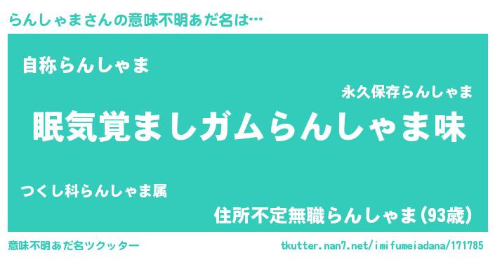| ヘコむあだ名 | 『らんしゃま(苦笑)』『なまこ酢』 |