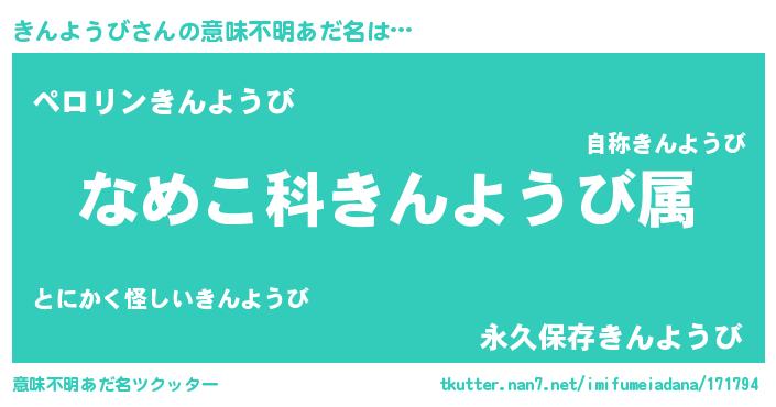 | ヘコむあだ名 | 『きんにゅー』『きんようび(爆)』 |