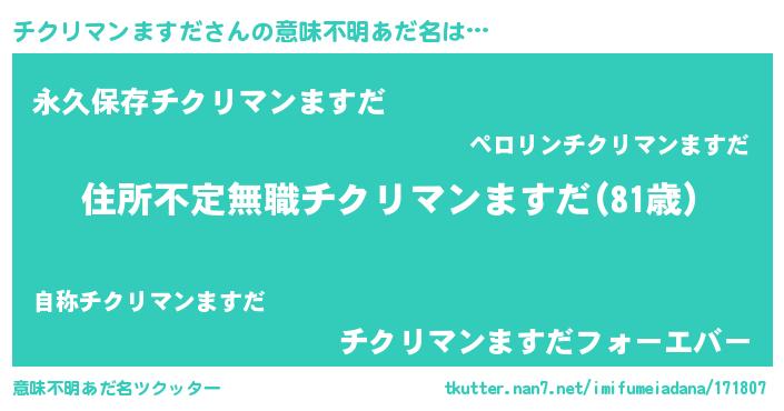 | 男性向けラノベタイトル風あだ名 | 『この素晴らしい世界にチクリマンますだを!』 |
