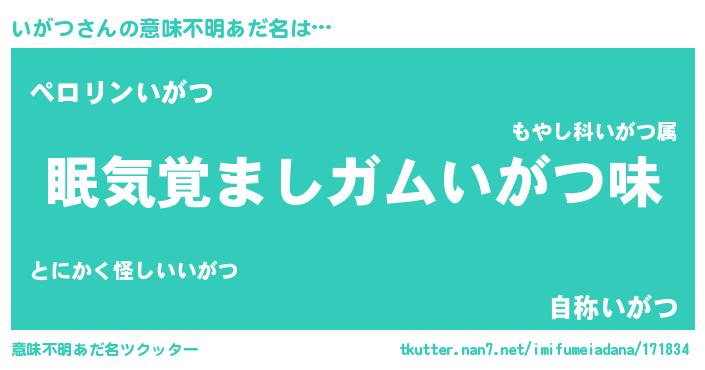 | 女子向けラノベタイトル風あだ名 | 『いがつ夫妻のなれそめ』『闇のいがつ』 |