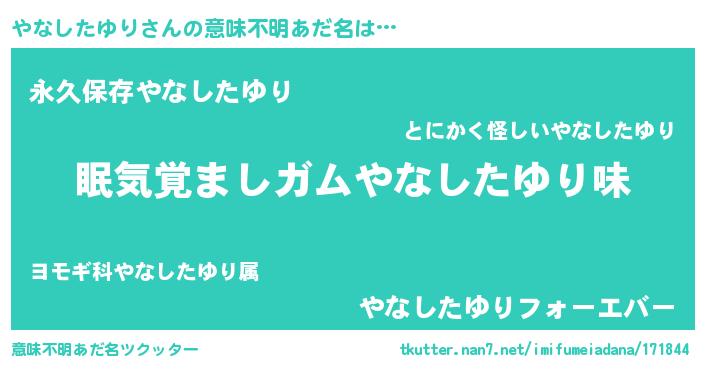 | 男性向けラノベタイトル風あだ名 | 『ノーゲーム・ノーヤナシタユリ』 |