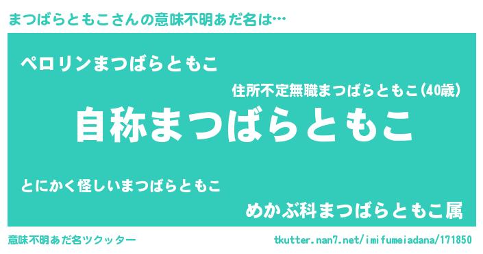 | 胡散臭い通販商品みたいなあだ名 | 『ガンによく効くアガリクス…その名も「まつばらともこ」』 |
