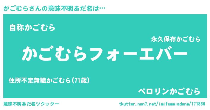 | 女子向けラノベタイトル風あだ名 | 『かごむらの雑貨屋さん』『闇のかごむら』 |